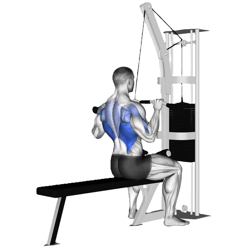 Pierwsze ćwiczenie to ściąganie pionowe. Wybierz swój ulubiony chwyt (nachwyt, podchwyt lub neutral). Nachwyt oraz neutral na szerokość barków zaangażuje głównie górne obszary najszerszego grzbietu. Jeżeli jednak zależy ci na skupieniu się na dolnych obszarach mięśnia najszerszego grzbietu → szeroki nachwyt będzie idealny.